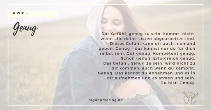 Dieses Gefühl kann dir auch niemand geben. Genug – das kannst nur du für dich selbst sein.